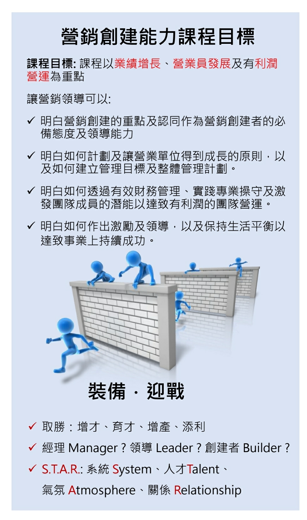 課程目標: 課程以業績增長、營業員發展及有利潤營運為重點